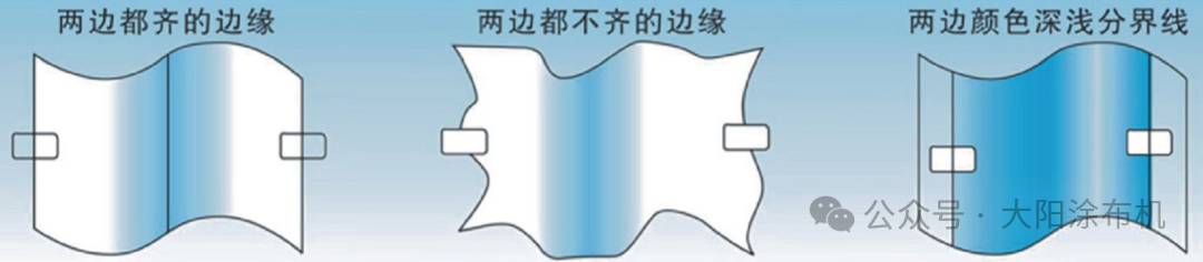 產(chǎn)生原因:基材進入涂布裝置前已經(jīng)發(fā)生位置偏移,造成涂布過程出現(xiàn)質(zhì)量缺陷;還有就是涂布輥(或刮刀)的安裝中心線與基材運行基準線未對準;基材在涂布輥上因局部張力不均產(chǎn)生微量打滑或橫向漂移;以及涂布液在模頭唇口壓力分布不均,對運動的基材產(chǎn)生不對稱的橫向流體壓力等情況。
